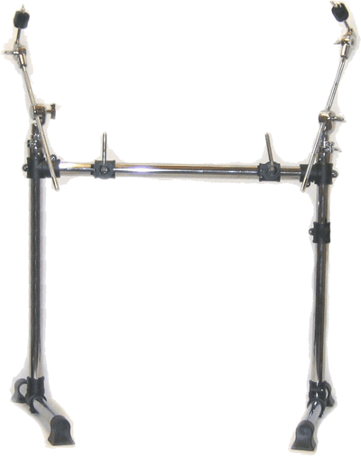 Das A400-Rack besteht aus verchromten Stahlröhren. Das Schlagzeug